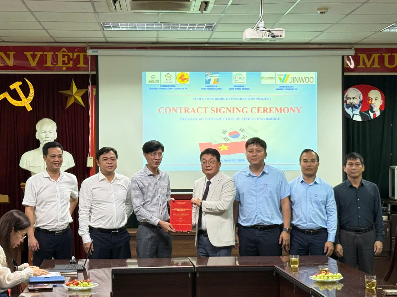 Sáng ngày 22/4/2026 tại Ban quản lý dự án Thăng Long đã diễn ra lễ ký Hợp đồng gói thầu số 9 xây dựng cầu Ninh Cường giữa Ban Quản lý dự án Thăng Long (Chủ đầu tư) và Liên danh nhà thầu Ilsung – Thăng Long – Cienco4.