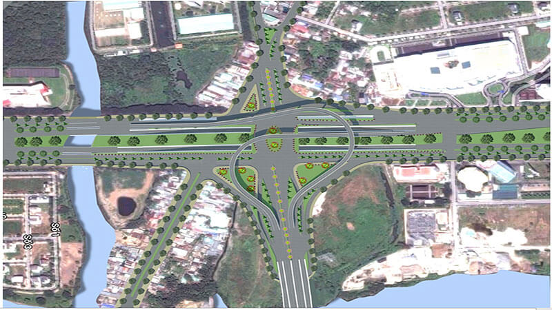 Bên cạnh đó, xây dựng đường nhánh rẽ trái cạnh hầm chui 1 dài 231m và nhánh đường cạnh hầm chui 2 dài 217m, rộng 8,5m. Cải tạo giải phân cách giữa đường Nguyễn Văn Linh và đường Nguyễn Hữu Thọ để bố trí các làn chờ, làn rẽ trái, quay đầu xe, tăng năng lực thông hành của nút giao.