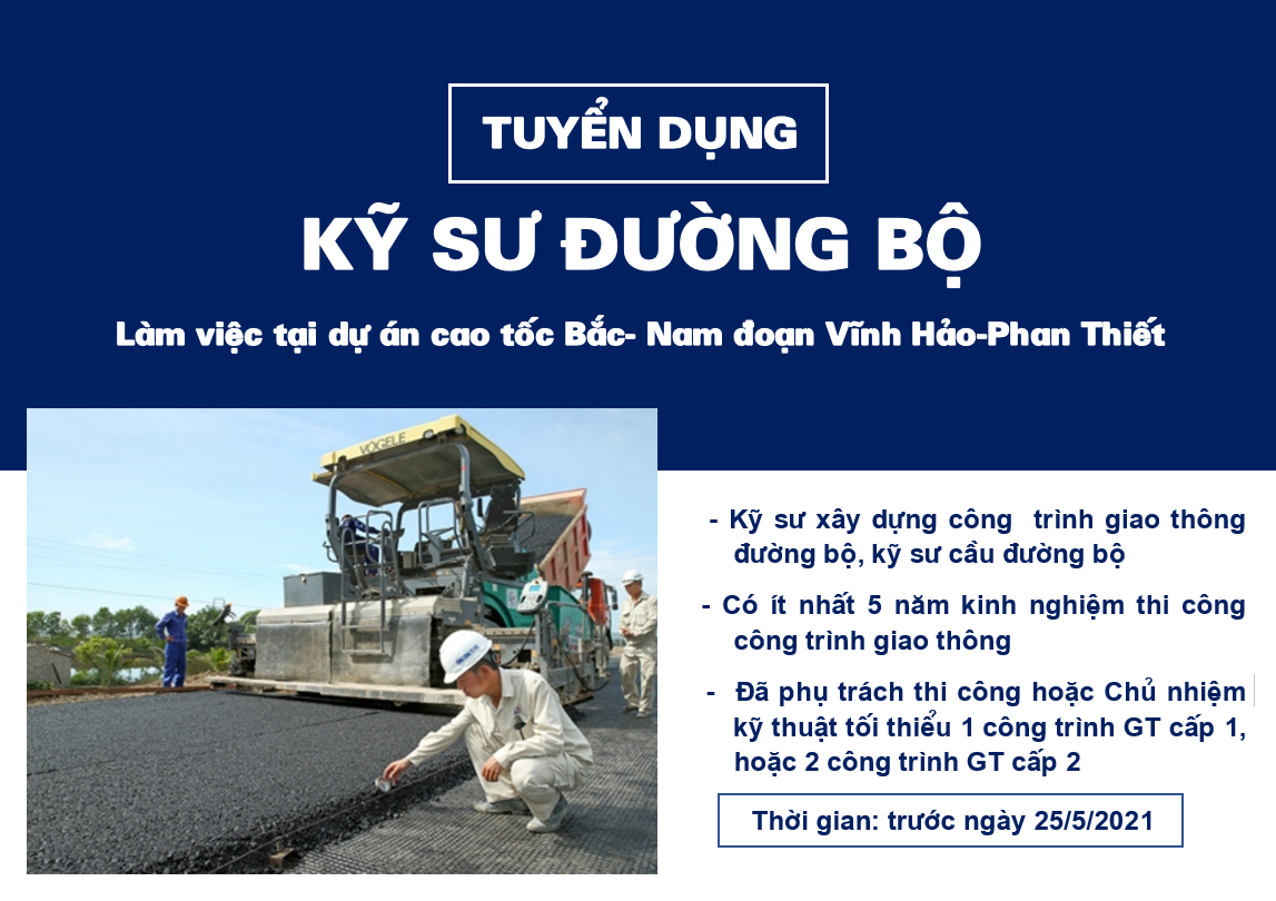 Tuyển dụng 01 Kỹ sư đường bộ làm việc tại dự án cao tốc Bắc-Nam đoạn Vĩnh Hảo-Phan Thiết
